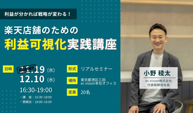 利益が分かれば戦略が変わる!楽天店舗のための実践講座【12月10日(水)リアル開催】
