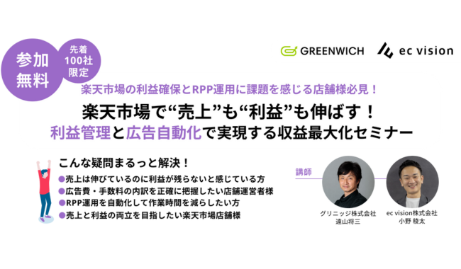 【11/27開催】「楽天市場で“売上”も“利益”も伸ばす!利益管理と広告自動化で実現する収益最大化セミナー」に登壇します