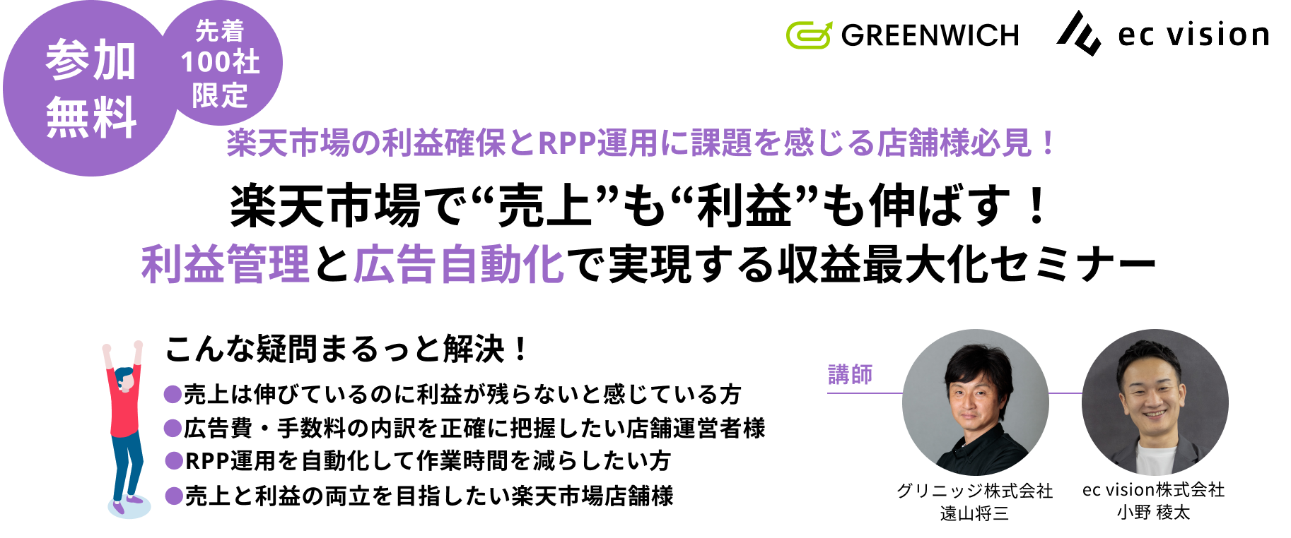 【11/27開催】「楽天市場で“売上”も“利益”も伸ばす!利益管理と広告自動化で実現する収益最大化セミナー」に登壇します